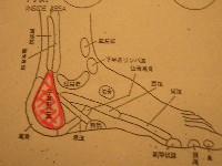 足の外側のくるぶしの下が卵巣、睾丸の反射区。